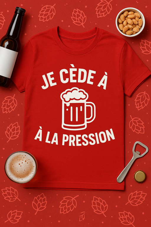 Envie de faire sourire autour de vous, ou tout simplement d’assumer pleinement vos petites faiblesses avec style ? Ce t-shirt ‘Je cède à la pression’ est fait pour vous ! Fabriqué dans un coton ultra doux et confortable, il est aussi irrésistible que la tentation d’un apéro entre amis. Un must-have pour ceux qui savent rire d’eux-mêmes et ne prennent pas la vie trop au sérieux. Parfait pour les soirées détente, les lendemains de fête ou toute autre occasion où céder à la pression devient un art de vivre.