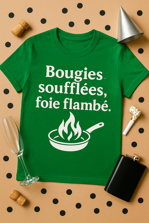 Célébrez vos soirées d’anniversaire un peu (trop) festives avec ce t-shirt unique arborant le slogan hilarant : « Bougies soufflées, foie flambé ». Parfait pour les rois et reines de la fête, ce tee arbore un design original qui fera rire vos amis dès le premier regard. Confectionné en coton doux et résistant, il est idéal pour les lendemains difficiles ou les lendemains de fête. À offrir ou à s’offrir sans modération !