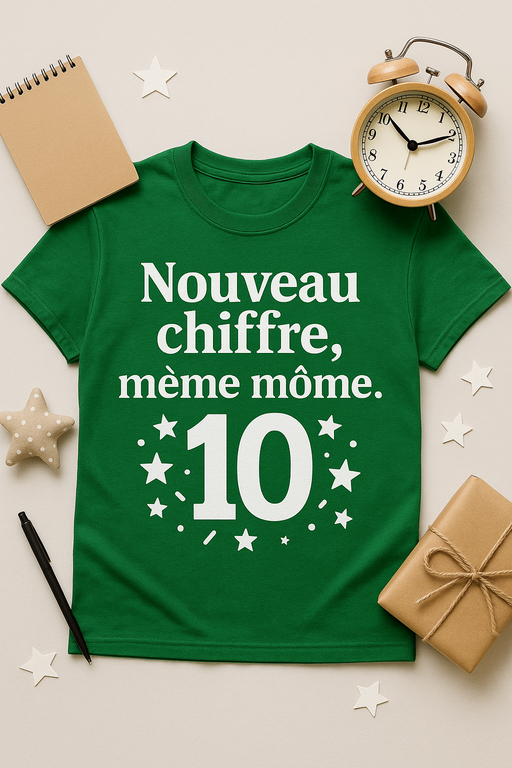 Grandir ? Oui. Changer ? Jamais ! Ce t-shirt « Nouveau chiffre, même môme » est l’arme parfaite pour ceux qui prennent un an de plus sans perdre leur âme d’enfant. Avec son message décalé et son style inimitable, il est fait pour tous les éternels mômes, peu importe leur âge. Confort, attitude et une bonne dose d’humour imprimée sur un coton doux comme un doudou. Portez-le fièrement à votre anniversaire (et le lendemain aussi, on ne juge pas) !