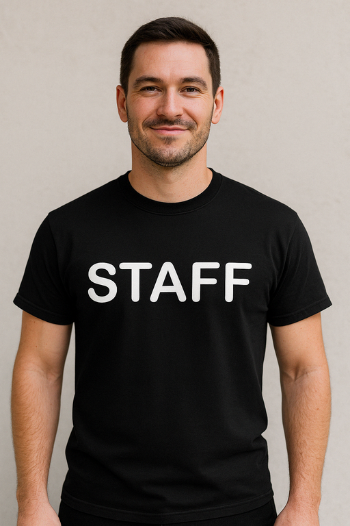 Toujours prêt·e à mettre de l’ordre et du rire ? 😎 Le t-shirt noir avec le grand marquage ‘STAFF’ dit que tu es le boss de la scène — même derrière le bar. Idéal pour les soirées, les événements et tous ceux qui ont de l’humour ! 🎉