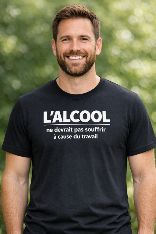 Avec son message L’ALCOOL ne devrait pas souffrir à cause du travail, il affiche la couleur en un clin d’œil et déclenche les rires dès que la journée se termine. Idéal pour le bureau, le bar ou un apéro au parc.