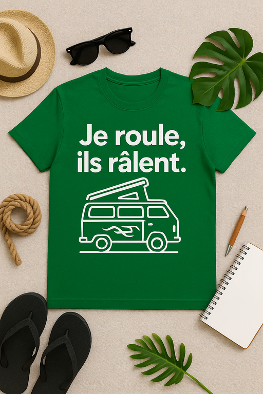 Prenez le volant du style avec notre t-shirt « Je roule, ils râlent » ! Que vous soyez motard intrépide, cycliste urbain ou simplement adepte des virées en voiture, ce tee-shirt à message est votre nouvelle armure contre les râleurs du quotidien. Confortable, décalé et imprimé avec humour, il fait tourner les têtes et rouler les sourires. Idéal pour offrir ou pour affirmer votre passion avec panache. Roulez stylé, laissez-les râler !