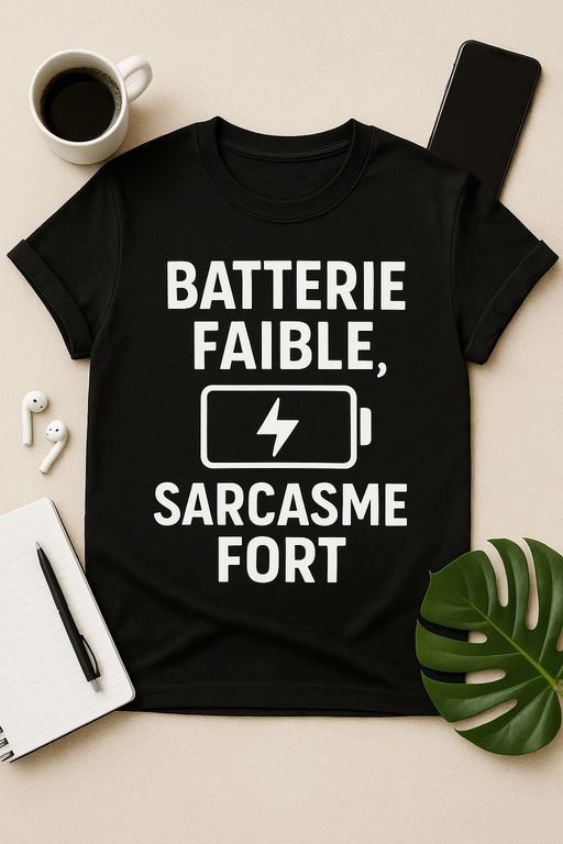 Quand votre batterie est à plat mais que votre sens de l’ironie est à 100 %, ce t-shirt est fait pour vous ! Avec son slogan percutant « Batterie faible, sarcasme fort », ce haut devient le porte-étendard de tous les lève-tard, les buveurs de café invétérés et les héros du cynisme du quotidien. Confortable, stylé et imparablement drôle, il est l’arme secrète de toute garde-robe pour aborder la journée avec humour… même sans énergie.